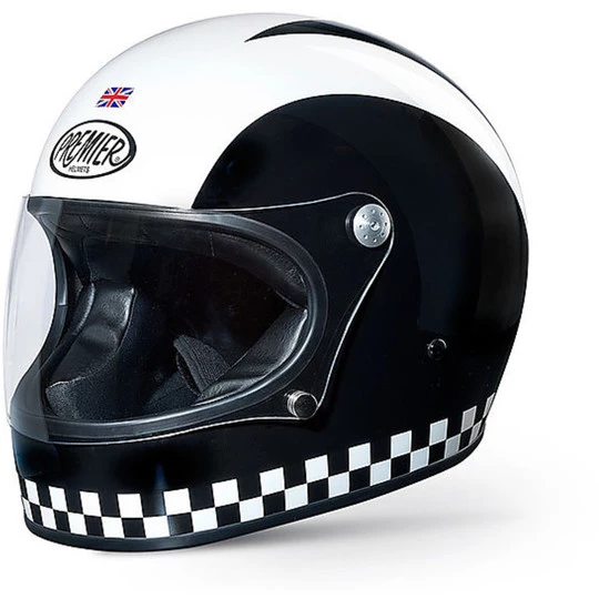 Premier ist eines der ältesten Unternehmen in das Panorama der Hersteller von Motorradhelmen und konnte nicht in seiner Sammlung fehlen 2014 ein Retro-Helm nicht nur in der Grafik, sondern auch in der Form der Schale und der verschiedenen Komponenten. Trophy spiegelt den Stil und die Form der Helme aus den 70er Jahren, aber es zu modernen Sicherheitsstandards entspricht.