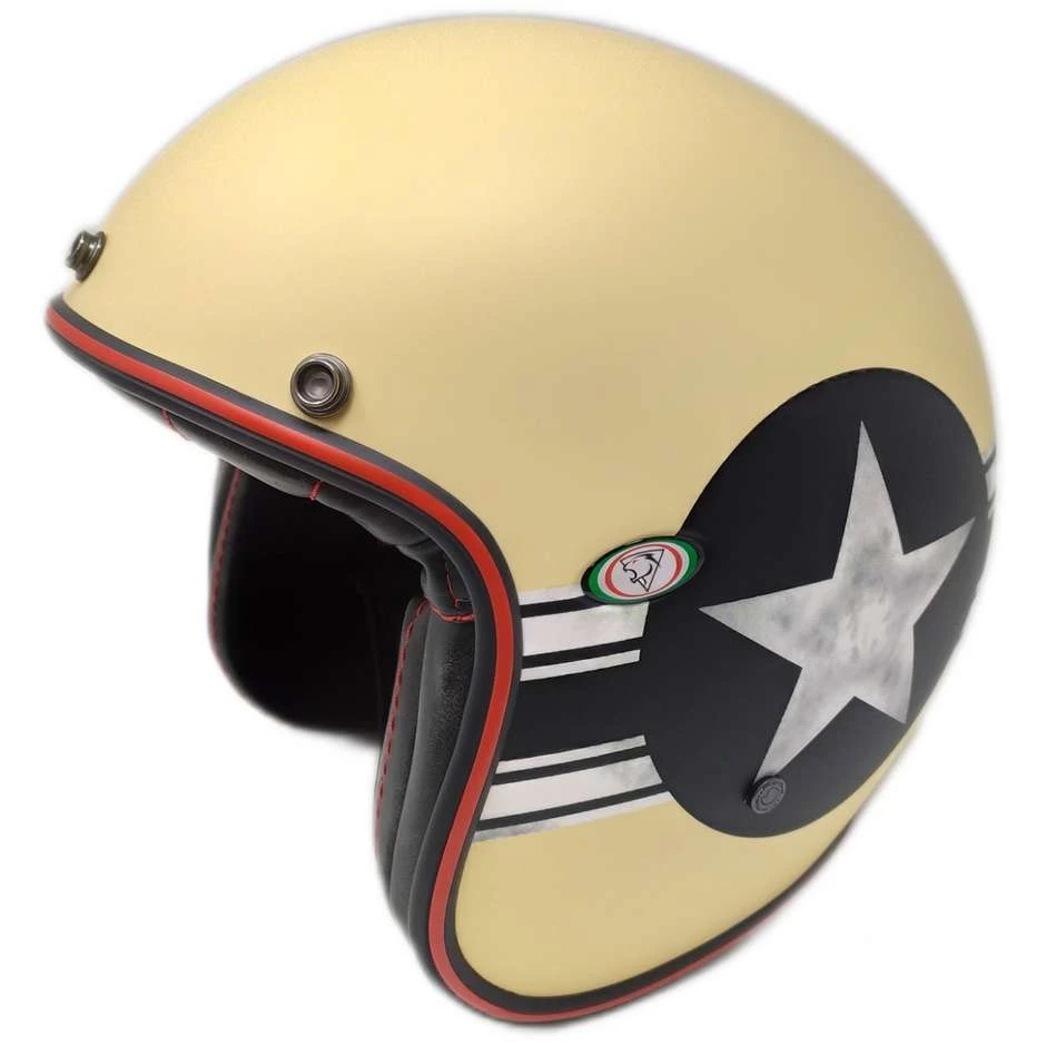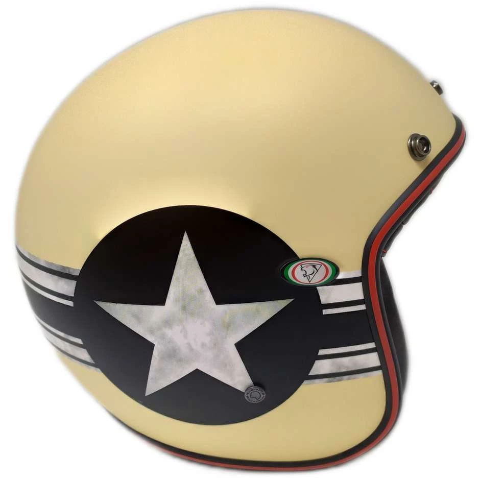 Vintage, ein Jet mit einer faszinierenden Form, der auf die neuesten Anforderungen an Stil und Mode reagiert. Umhüllend, gesammelt und mit wunderschönen klassischen Grafiken ausgestattet, eignet sich Vintage für den Stadtgebrauch, für diejenigen, die einen schönen und modischen Helm wollen, aber nicht auf Sicherheit verzichten möchten. Die Schale des Vintage-Jets besteht aus Tricomposite-Fasern mit Dyneema-, Carbon- und Aramidfasern.