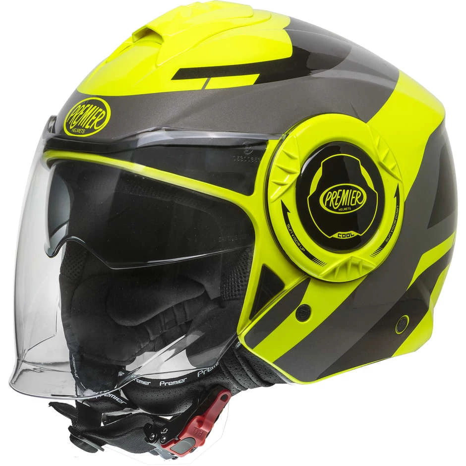 Motorradhelm Jet Premier COOL OPT FLUO Schwarz Grau Fluo Gelb