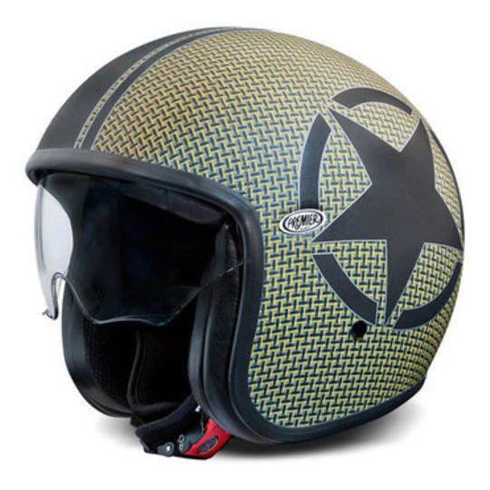 Premier bietet einen neuen Jet-Helm aus der Kollektion 2011. Vintage, eine formschöne Jet, die die neuesten Anforderungen von Stil und Mode trifft. Kuvertierung, mit schönen Grafiken und gesammelten classic ist die Weinlese geeignet für die Stadt, für diejenigen, die einen Helm schöne und modische wollen, wollen aber trotzdem die Sicherheit. Die Schale des Jet Vintage ist Kohlefaser. Premier nimmt die gleiche Zusammensetzung wie die von all ihren Helmen und es kommt aus der großen italienischen Erfahrung das Unternehmen im Laufe der Jahre in das Studium und die Verwendung von Verbundwerkstoffen Fasern gewonnen hat. Die Innenschale ist in eps, Formschäume, für die beste Stoßdämpfung. Der neue Jahrgang Premier hat einen versenkbaren Visier stark zwischen den beiden äußeren und inneren Endkappen leicht bedienbar untergebracht.