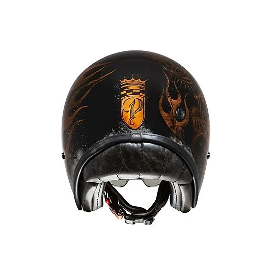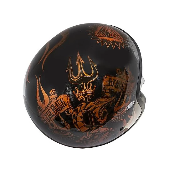 Vintage Jet Motorradhelm aus Premier Fiber VINTAGE EVO BD Orange verchromt poliert schwarz