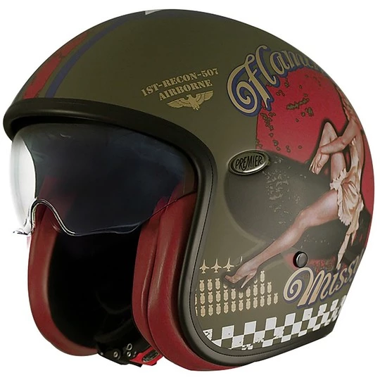 Vintage Jet Motorradhelm in Premier Fiber VINTAGE EVO Pin Up Militär Grün BM Matt